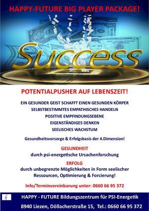 BIG PLAYER PACKAGE - POTENTIALPUSHER AUF LEBENSZEIT Erfahren Sie, wie eine Innovation aus der PSI-Forschung Ihr Leben verändern kann! Diese Maßnahme aus dem Wissenschaftsgebiet der PSI-Forschung bringt Sie körperlich und geistig rasch in ...